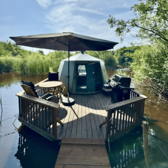 Nyd Københavns blå bynatur fra en Blue Raft, som I selv sejler ud til, og hvor I får de perfekte rammer for hygge og samvær. Oplevelsen egner sig både til kærestepar, venner og børnefamilier, der ønsker en anderledes outdoor oplevelse i naturen tæt på byen. På soldækket finder I bord, bænke og et vindskærmende hegn, mens sovesektionen – med plads til fire voksne – er udstyret med lys, madrasser og transparente døre. Derudover følger både en robåd til fire personer og to SUP-boards med i hele lejeperioden, så I kan udforske vandet i jeres eget tempo.