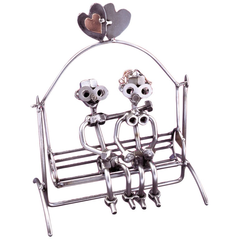Denne charmerende metalfigur som par i hængesofa er den perfekte Valentinsgave til ham eller til kæresteparret, der skal fejres. Figuren er en smuk og romantisk måde at udtrykke kærlighed på og passer perfekt som gave til både kærestepar og brudepar. Med en graveringsplade kan du gøre gaven helt personlig, hvilket skaber et mindeværdigt og unikt symbol på jeres forhold.